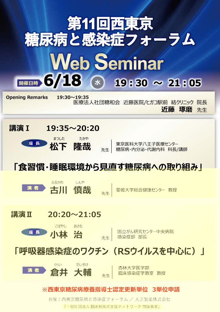 - 【オンライン】第11回西東京糖尿病と感染症フォーラム