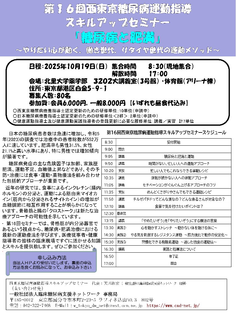 - 第16回西東京糖尿病運動指導スキルアップセミナー