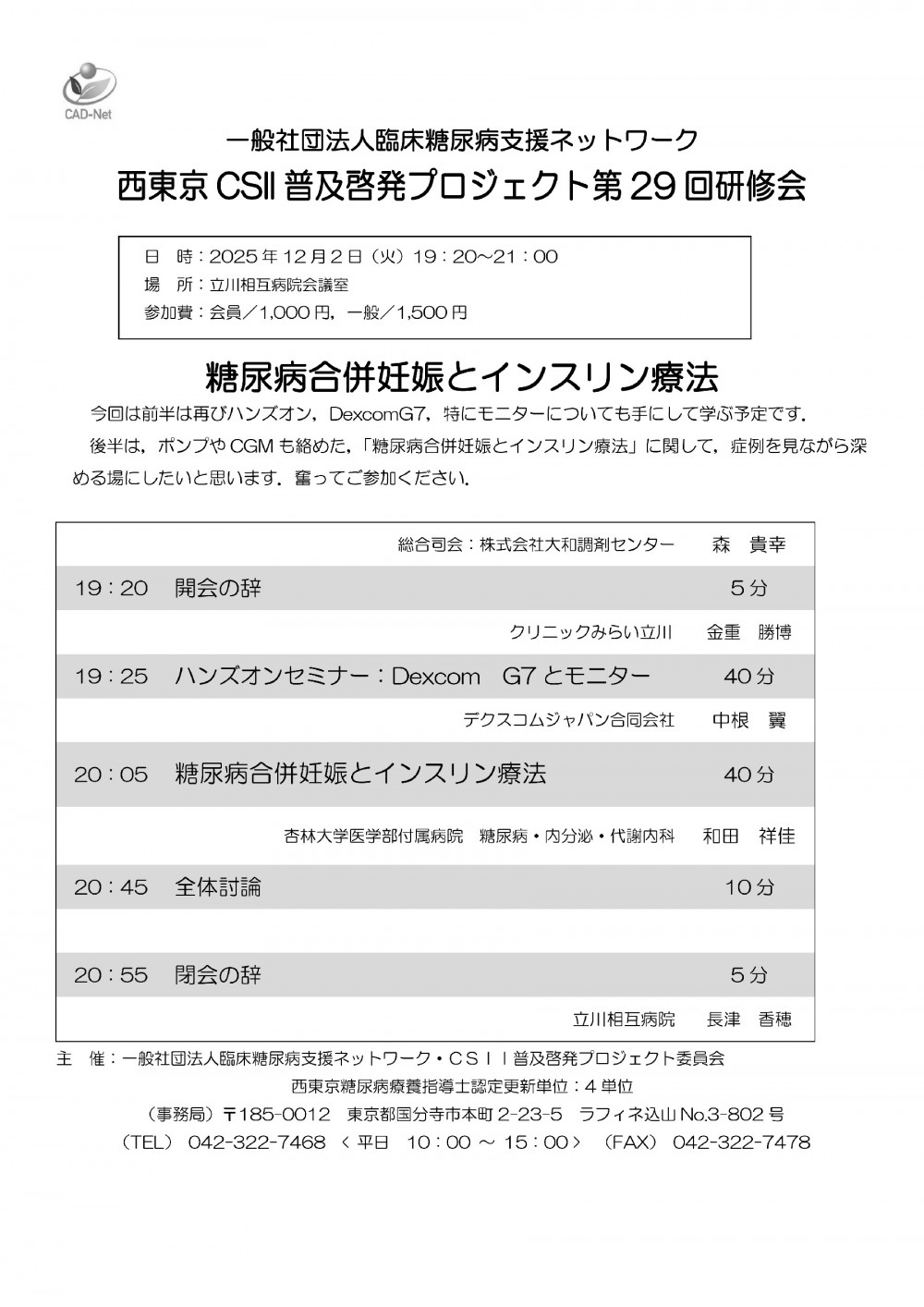 - 一般社団法人 臨床糖尿病支援ネットワーク 事務局 (TEL:042-322-7468)