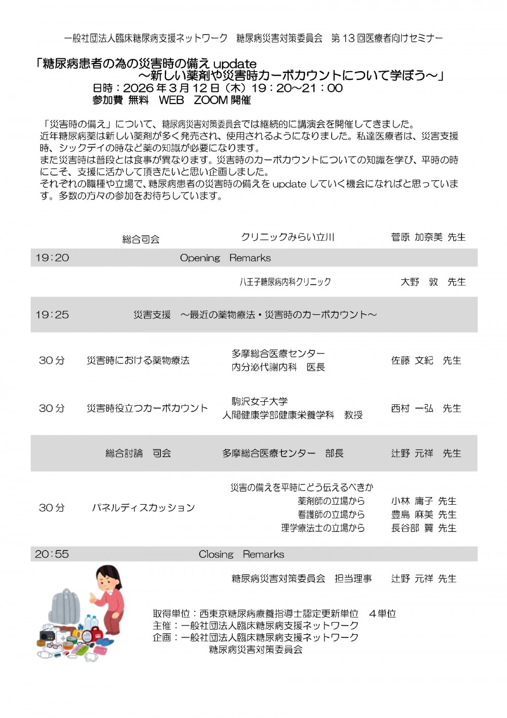 【オンライン】臨床糖尿病支援ネットワーク 糖尿病災害対策委員会 第13回医療者向けセミナー