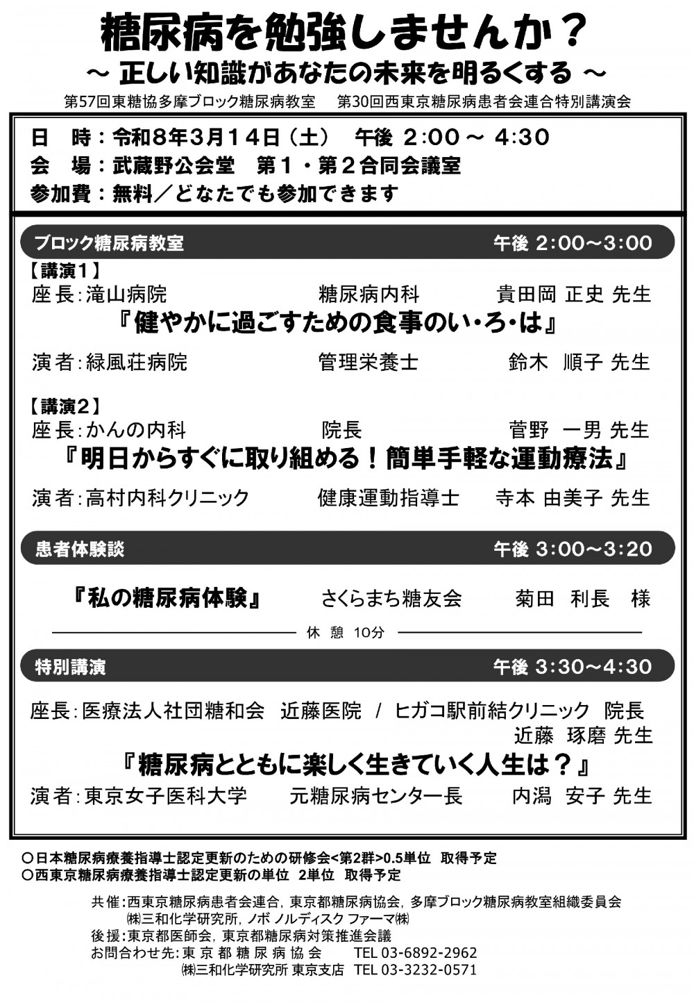 - 第57回東糖協多摩ブロック糖尿病教室 第30回西東京糖尿病患者会連合特別講演会